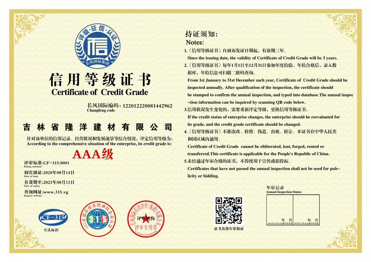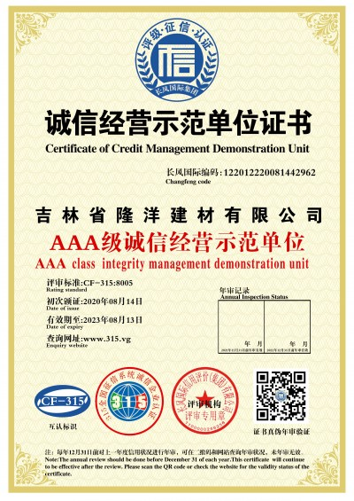 2.是吉林省隆洋建材有限公司在中國“注冊”及全權(quán)擁有?!旧虡?biāo)注冊號:第26605089號;第26595409號】。